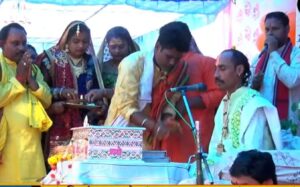 खरसिया | ग्राम ढ़ीमनी में स्व. कृष्ण कुमार जायसवाल की स्मृति में उनके पत्नी हेम बाई जायसवाल पुत्र महेश पंकेश जायसवाल द्वारा किया जा रहा है श्रीमद् भागवत कथा में मंगलवार को भगवान श्रीकृष्ण का जन्मोत्सव धूमधाम से मनाया गया। कथा के दौरान जैसे भगवान का जन्म हुआ तो पूरा पंडाल नंद के आनंद भयो जय कन्हैया लाल की के जयकारों से गूंज उठा। इस दौरान लोग झूमने-नाचने लगे। भगवान श्रीकृष्ण की वेश में नन्हें बालक के दर्शन करने के लिए लोग लालायित नजर आ रहे थे। भगवान के जन्म की खुशी पर महिलाओं द्वारा अपने घरों से लगाए गए गुड़ के लड्डूओं से भगवान को भोग लगाया गया। इस अवसर पर पं. खेम राज दुबे ने कहा कि जब धरती पर चारों ओर त्राहि-त्राहि मच गई, चारों ओर अत्याचार, अनाचार का साम्राज्य फैल गया तब भगवान श्रीकृष्ण ने देवकी के आठवें गर्भ के रूप में जन्म लेकर कंश का संहार किया। इस अवसर पर उन्होंने भगवान श्रीकृष्ण की विभिन्न बाल लीलाओं का वर्णन किया। कथा के दौरान बड़ी संख्या में श्रद्धालु मौजूद थे।