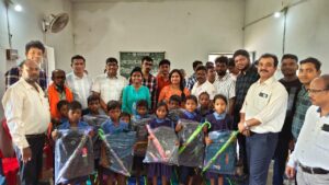 विद्यार्थी सहायता कार्यक्रम मे विद्यार्थियों को बांटे गए स्कूल बैग और छत्ता