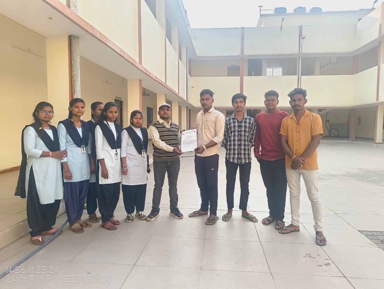 खरसिया अखिल भारतीय विद्यार्थी परिषद ने शहीद वीर नारायण सिंह शासकीय महाविद्यालय जोबी बर्रा में PG की कक्षाएं की गई महाविद्यालय में सन 2013 से बीए बीएससी बीकॉम UG संचालित हो रहे हैं लेकिन हमारे आदिवासी बाहुल्य क्षेत्र PG के लिए दूर शहर जाना पड़ता है कई परिवार ऐसे हैं जो आर्थिक रूप से कमजोर हैं जिसमें उच्च शिक्षा के लिए शहर नहीं भेज सकते तो वहीं अखिल भारतीय विद्यार्थी परिषद संगठन नेता गजेन्द्र गबेल ने प्राचार्य महोदय को ज्ञापन के माध्यम से अवगत कराया और PG की कक्षाएं संचालित करने के लिए मांग की गई