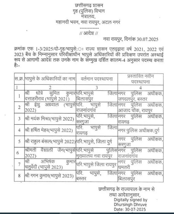 मंत्रिपरिषद की बैठक दिनांक 30 जुलाई 2025 dept ltr 222 date 29.07.2025 SAS Transfer Order Date 30.07.25रायपुर_ अपडेट