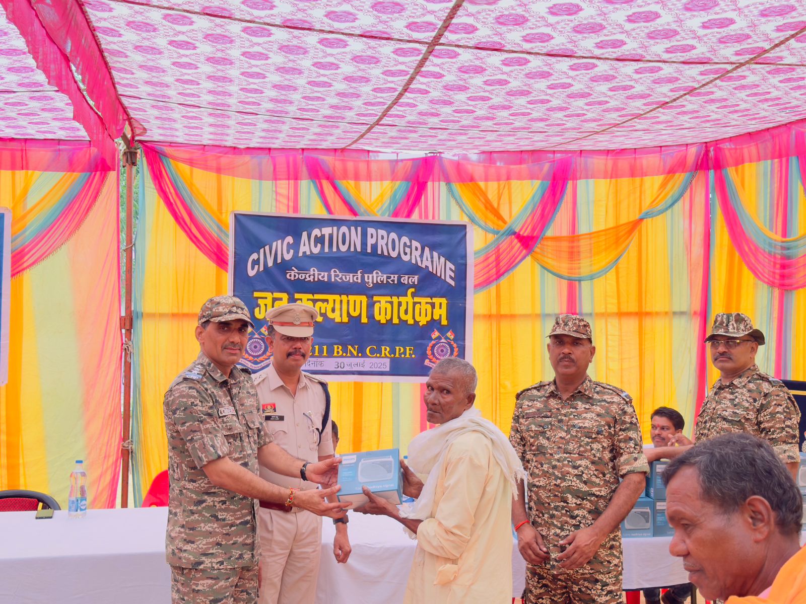 जिले के वनांचल क्षेत्र स्थित सीआरपीएफ कैंप के जवानों ने उच्च अधिकारियों के निर्देश पर सिविक एक्शन कार्यक्रम का अयोजन किए, इस दौरान कार्यक्रम के मुख्यअतिथि आलोक अवस्थी द्वितीय कमांडेंट 211 वीं बटालियन के मार्गदर्शन और निरीक्षक जीडी दीनानाथ कंपनी कमांडर, निरीक्षक जीडी दिनेश कंपनी द्वितीय कमान के नेतृत्व में नक्सल प्रभावित क्षेत्र के जरूरत मंद ग्रामीणों और छात्रों को रेडियो उपकरण किए।