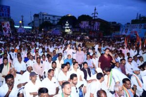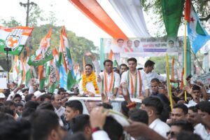 फूलों की माला बरसाई। तीनों नेताओं ने खुद मोबाईल पकड़कर समर्थकों के साथ फोटो और सेल्फी ली और किसी को निगह नहीं किया। जीप पर बैठे सभी नेताओं ने समर्थकों से हाथ मिलाकर उनका अभिवादन स्वीकार किया। गगनभेदी नारे और डीजे की धुन ने माहौल को और भी रोमांचक बना दिया। सत्तीगुड़ी चौक से लेकर कांग्रेस कार्यालय तक मार्ग बैनर और पोस्टर से सजाया गया, और युवा, बच्चे हाथ हिलाते, जय-जयकार करते