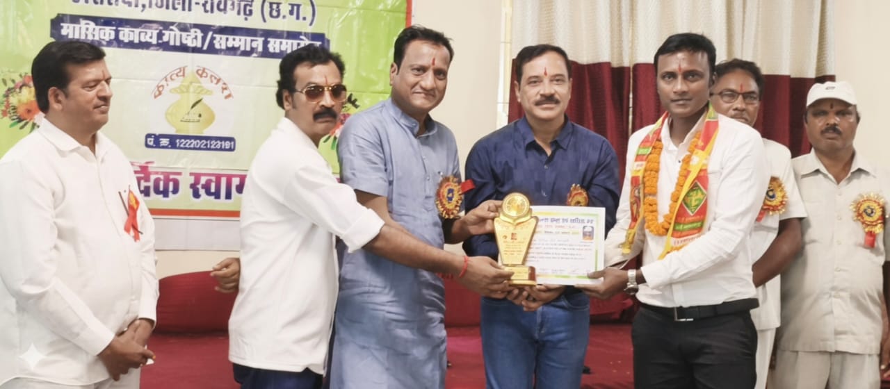 दिनांक 12 अक्टूबर 2025 को काव्य कलश कला एवं साहित्य मंच, खरसिया,जिला – रायगढ़, (छत्तीसगढ़) द्वारा गायत्री मंदिर परिसर में एक भव्य एवं गरिमामयी आयोजन संपन्न हुआ। इस अवसर पर ‘काव्य कलश शिक्षक रत्न सम्मान 2025’ एवं कवि सम्मेलन का आयोजन किया गया, जिसमें शिक्षा और साहित्य के क्षेत्र में उत्कृष्ट योगदान देने वाले शिक्षकों को सम्मानित किया गया।