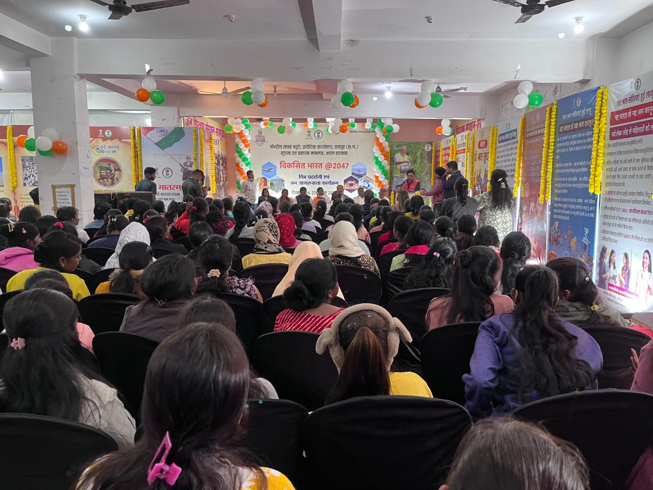 केंद्रीय संचार ब्यूरो ,सूचना एवं प्रसारण मंत्रालय भारत सरकार रायपुर के द्वारा आज अंबिकापुर स्थित जन शिक्षण संस्थान के सभागार में चित्र प्रदर्शनी एवं जन जागरूकता कार्यक्रम का आयोजन किया गया। जिसमें मुख्य अतिथि के रूप में श्रीमती मंजूषा भगत महापौर नगर पालिक निगम अंबिकापुर की गरिमामय उपस्थिति रहीं। साथ ही विशिष्ट अतिथि श्रीमती शिल्पा पांडे जी उपस्थित रही। साथ ही श्री शैलेश सिंह पार्षद, बबली नेताम पार्षद,श्री गिरीश गुप्ता साक्षरता, अनीता भगत पूर्व पार्षद, रविंद्र जी पार्षद, श्री सुदीप्तो कर सहायक निदेशक केंद्रीय संचार ब्यूरों रायपुर, श्री एम सिद्दीकी निदेशक जन शिक्षण संस्थान सरगुजा, श्री हिमांशु सोनी, श्री एस के गुप्ता सेंट्रल बैंक अंबिकापुर, श्री अंचल ओझा समाज सेवी सभी की गरिमामय उपस्थिति रहीं।