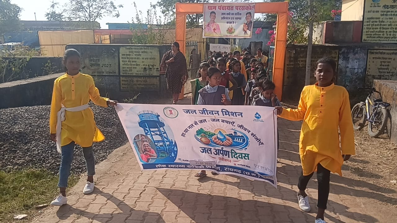 खरसिया दिनांक 11.02.2026 को लोक स्वास्थ्य यांत्रिकी विभाग रायगढ़ के विकास खंड खरसिया के ग्राम पंचायत परसकोल में जल अर्पण दिवस का कार्यक्रम आयोजित किया गया। (FTK) किट के माध्यम से जल परीक्षण का प्रदर्शन किया गया तथा जल बहिनियों को इसके उपयोग की विस्तृत जानकारी प्रदान की गई। जल गुणवत्ता के संबंध में विस्तारपूर्वक समझाया गया तथा जल से जुड़े विभिन्न महत्वपूर्ण विषयों पर चर्चा एवं मार्गदर्शन दिया गया।