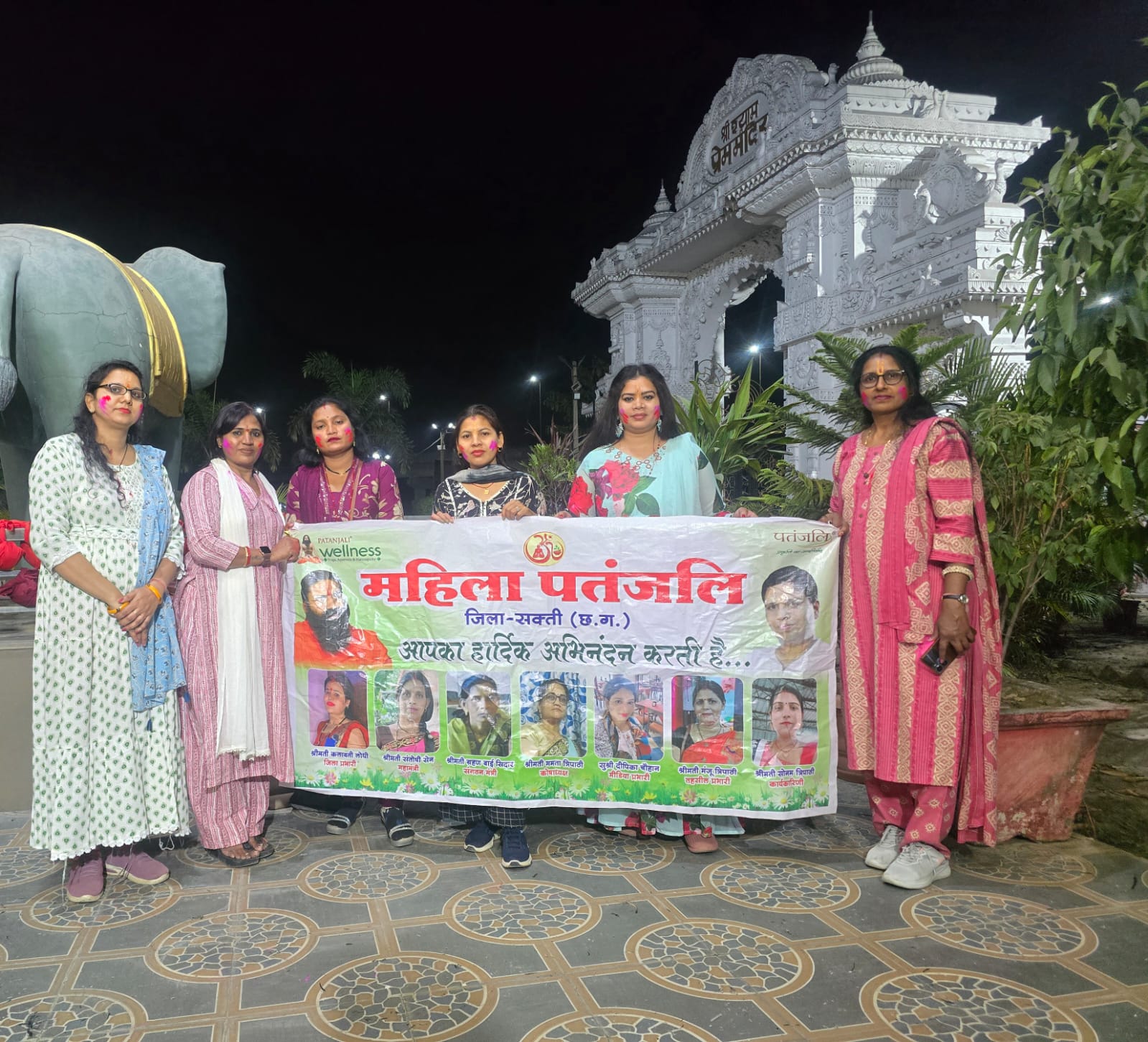 महिला पतंजलि जांजगीर के प्रेम मंदिर में गुलाल उड़ाकर मनाया होली